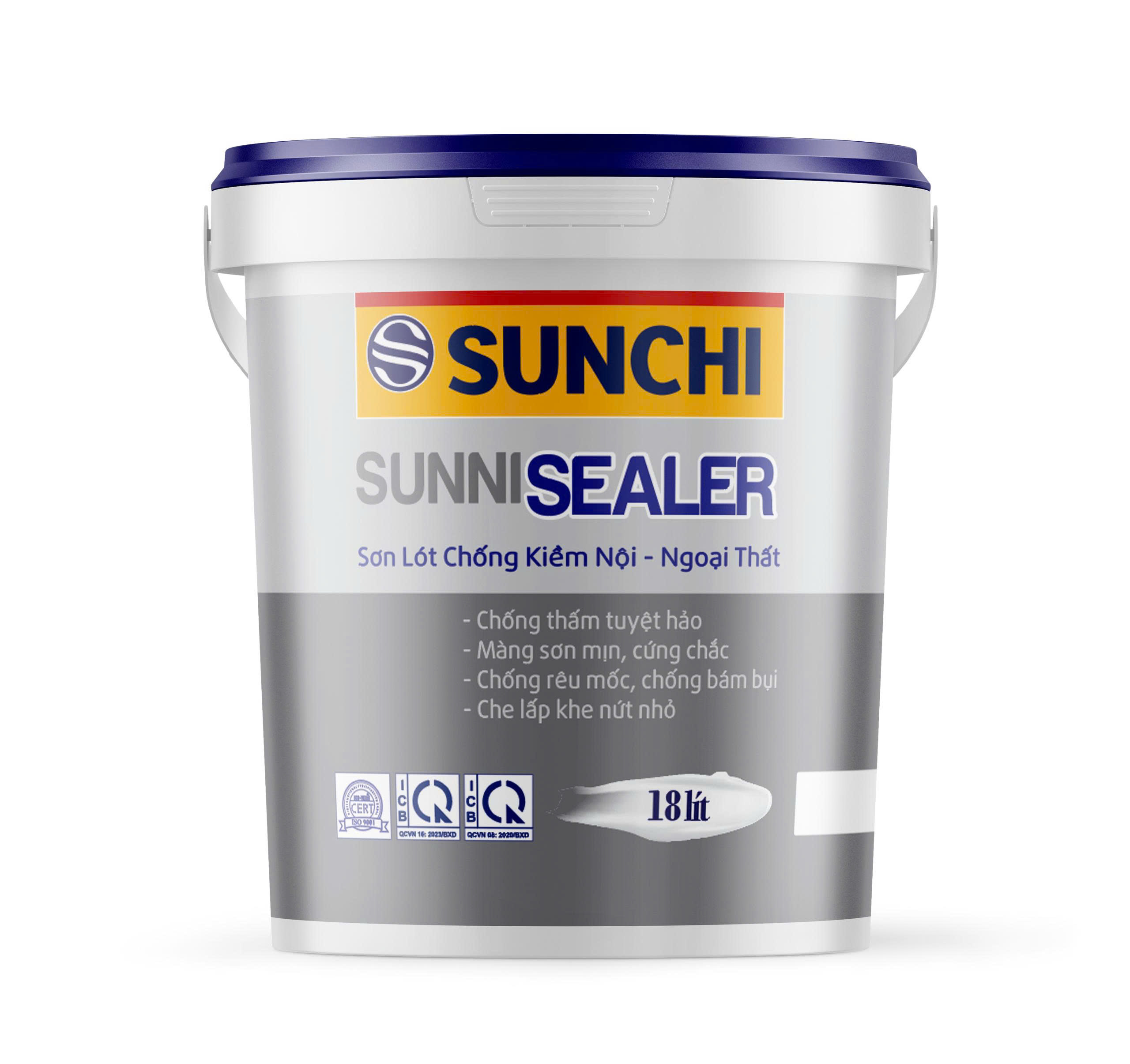 Sơn Lót Chống Kiềm Nội – Ngoại Thất Cao Cấp SUNCHI SUNNI giúp lớp sơn hoàn thiện có độ láng mịn tuyệt hảo, tạo độ bám dính cực tốt, bảo vệ bức tường khỏi hiện tượng bị kiềm hóa và tăng độ bền cho lớp Sơn phủ. Tăng cường khả năng chống thấm, đồng thời giữ cho màu sắc của lớp sơn hoàn thiện,phù hợp với bề mặt ngoài trời của tất cả các công trình xây dựng.
